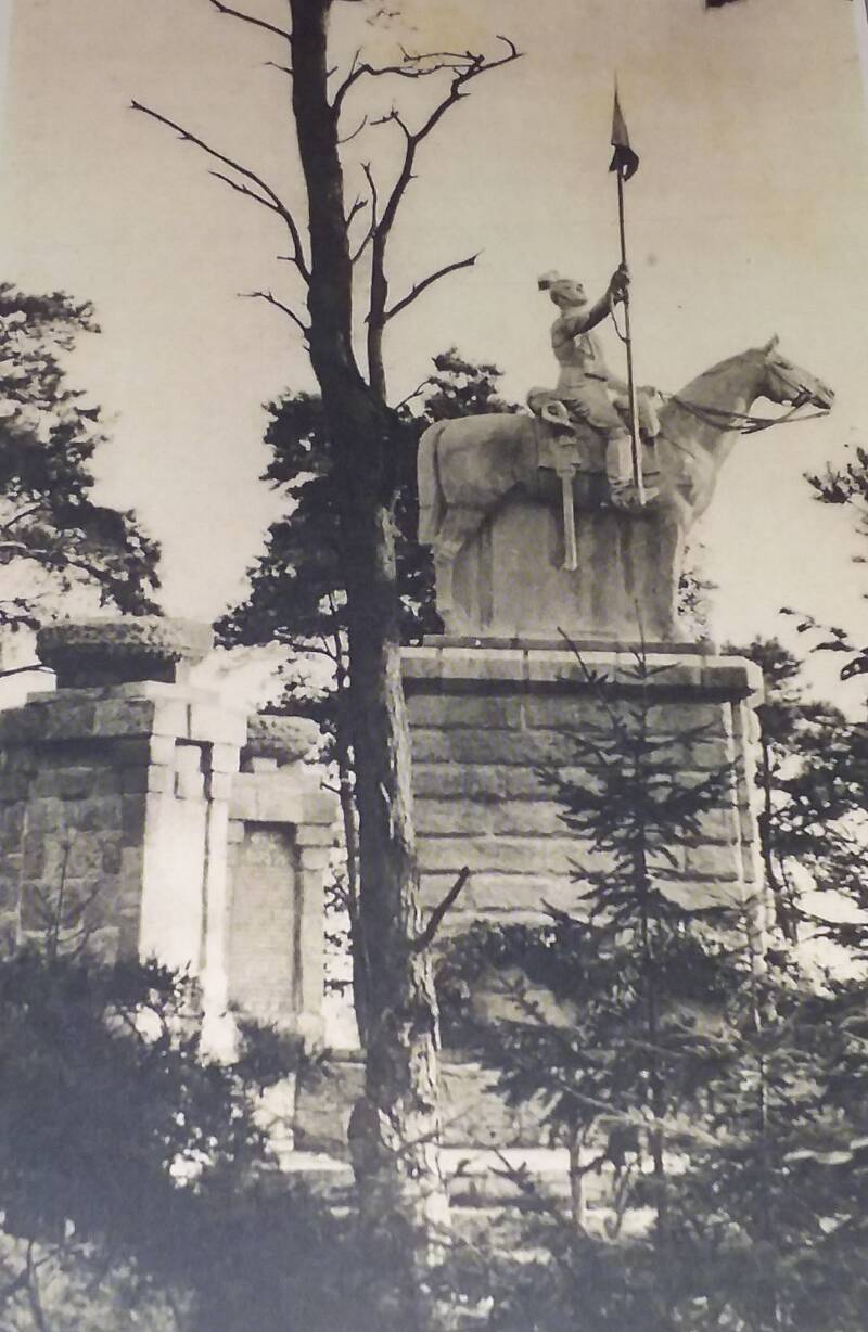 Auf einem drei Meter hohen Sockel stand die Skulptur des Militärpferdes mit einem Ulanen, das bis zur Speerspitze noch einmal vier Meter maß.